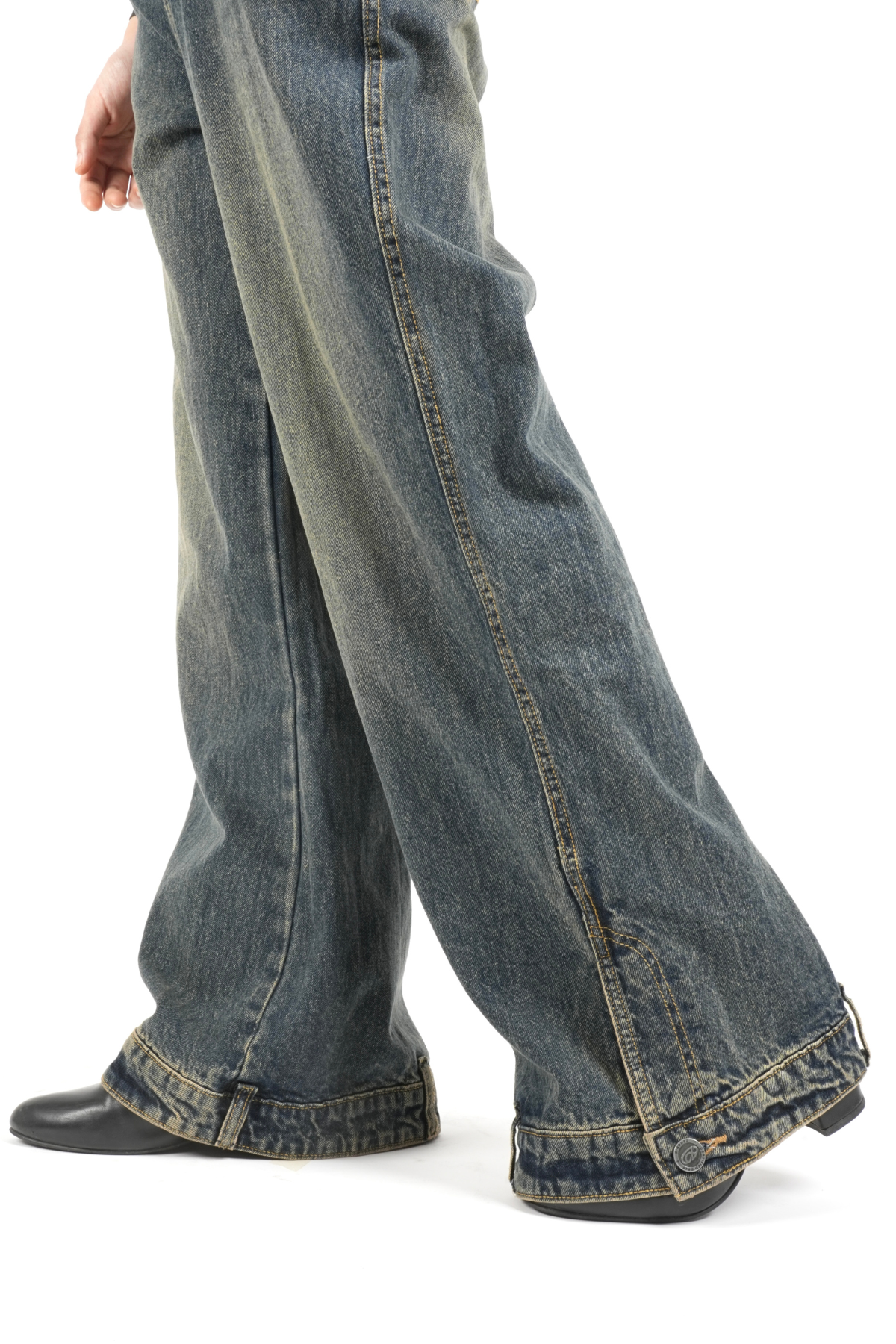 Vintage legacy denim Designed for a relaxed oversized silhouette, this denim is crafted from 100% cotton with a vintage blue wash. Subtle fading gives it depth, while the intricate hem detailing sets it apart as a statement streetwear essential.